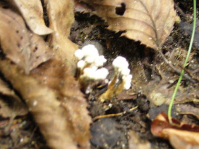 キノコの下の土の中にセミの幼虫本体が埋もれています。