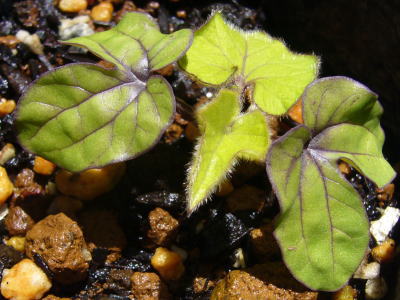 貰った朝顔の種、5粒のうち2粒の芽が出ました。