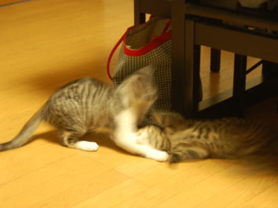 「ウチのは2匹で鍛え合っているから、絶対ネズミが捕れるに違いない!」と言っているのはボン♂さんです
