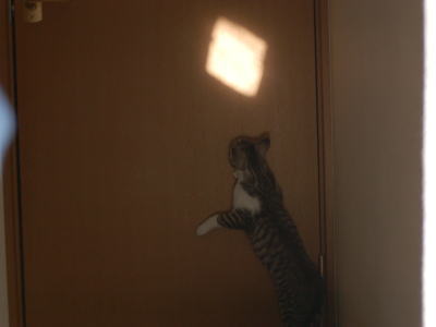 鏡で太陽の光を壁に当てて遊んでみたら・・・