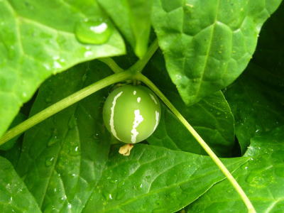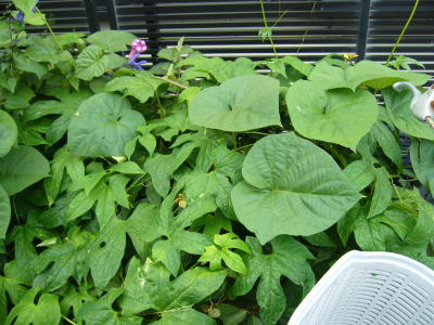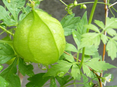 右は、ふうせんかずら。風船がなかなか出来ない。埋もれてしまったか?