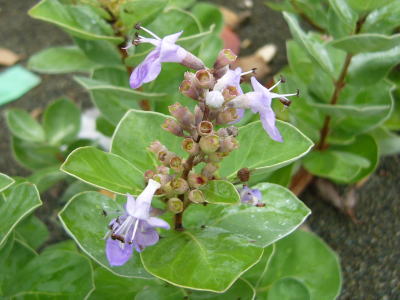 メドウセージに琉球朝顔が絡みつき、さらにオキナワスズメウリがおいかぶさる・・・下のほうに植えたものは、見えない・・・
