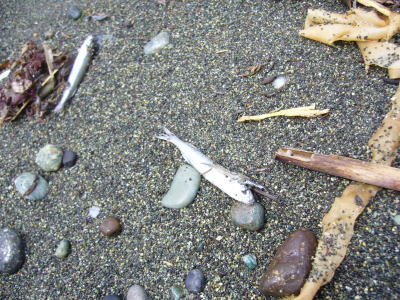 5㎝位~15㎝位までのイワシがボツボツ打ち上げられてました。