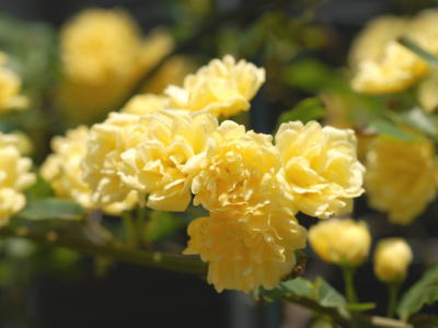さてさて、もう少し蕾が残ってますが、モッコウバラがほぼ満開です。