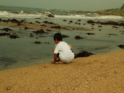 5人がかりのビーチコーミング、この日の「頑張ったで賞」は子ボン♂。