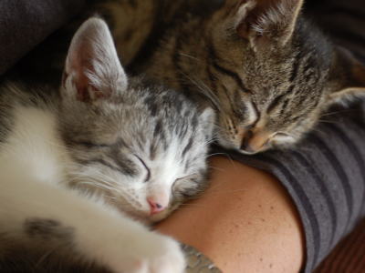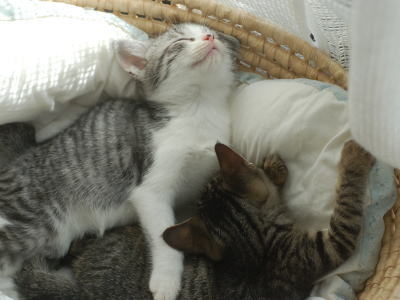 ニャンズは、たいていソファの上で眠りに落ちるので、